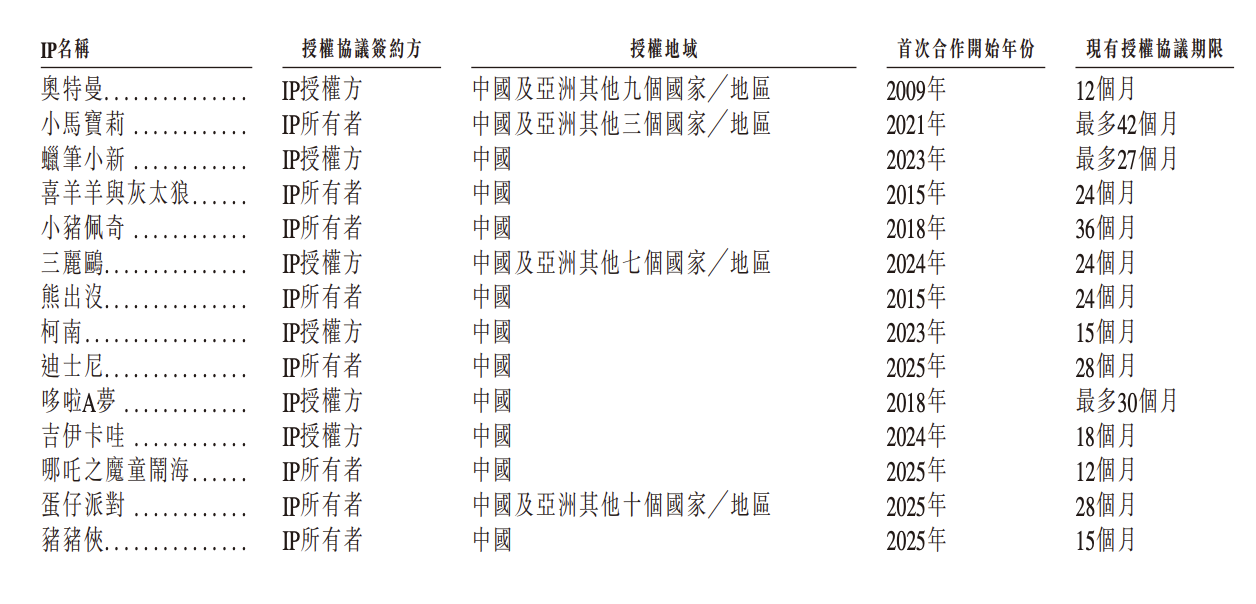 10月20日,据港交所披露的消息,“IP趣玩食物企业”广东金添动漫股份无限公司(下称“金添动漫”)正式向港交所递交上市申请,招商证券国际取中国银河国际担任联席保荐人。息显示,金添动漫是一家IP趣玩食物企业,截至2025年6月30日,金添动漫正在全国建有5大出产、具有26个授权IP及跨越600个活跃SKU,包罗糖果、饼干、膨化、巧克力、海苔零食五大产物类别。招股文件援用弗若斯特沙利文演讲称,于2024年,按收入计,金添动漫为中国最大的IP趣玩食物企业和中国第四大IP食物企业,市场份额别离为7。6%及2。5%。同时,也是中国具有最多IP授权的IP趣玩食物企业。截至2025年6月30日,金添动漫具有笼盖日本、欧美及中国本土的26个授权IP,包罗奥特曼、小马宝莉、蜡笔小新、喜羊羊取灰太狼、小猪佩奇及三丽鸥等出名IP。广东金添动漫股份无限公司董事长蔡建淳正在接管采访时曾公开暗示,取IP最大的鞭策感化是让食物从“可食用商品”升级为“感情载体”,提高产物的溢价能力,不只由于食物好吃而采办,更多是促使消费者由于喜好IP脚色,且产物供给了必然的情感价值而采办。从业绩表示来看,金添动漫披露的数据显示,2022年-2024年,该公司收入从5。956亿元增至8。774亿元,毛利从1。586亿元提拔至2。955亿元,对应的毛利率从26。6%持续提拔至33。7%;期内溢利别离约为3670。8万元、7522。2万元、元。2025年上半年延续增加态势,其实现收入4。439亿元、毛利为1。541亿元,毛利率进一步升至34。7%,期内溢利为7004。1万元。金添动漫的经停业绩虽实现提拔,但增加背后也陪伴对IP授权的依赖风险。招股书显示,2022年-2024年,金添动漫IP趣玩食物的发卖收入占同期总营收的比沉别离达96。6%、97。6%、2025年上半年进一步添加至99。5%。金添动漫暗示,大部门IP趣玩食物是按照授权和谈开辟的,同时相当一部门的收入来自前五大授权IP相关的IP趣玩食物。于2022年至2024年,前五大授权IP贡献的收入占比别离为90%、88。7%、85。9%,2025年上半年为85。7%。此中,最大授权IP奥特曼的收入占比于2023年最高曾达63。0%,2025年上半年仍有43。9%。
