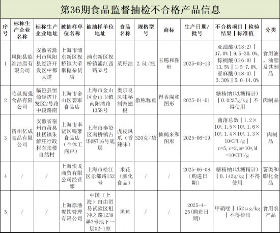 上海市市场监管局引见,2025年第36期省级食物平安抽检消息发布。本次抽检消息涉及7大类食物,包罗蛋成品、豆成品、肉成品、食用农产物、食用油、油脂及其成品、薯类和膨化食物和糖果成品。